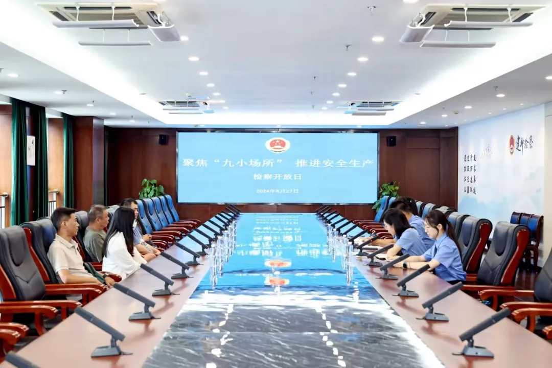为持续推进最高人民检察院“八号检察建议”长效长治,促进辖区内“九小场所”行业安全发展,建邺区检察院于8月27日举办推进“八号检察建议”检察开放日活动,邀请“九小场所”从业代表参加活动和座谈。