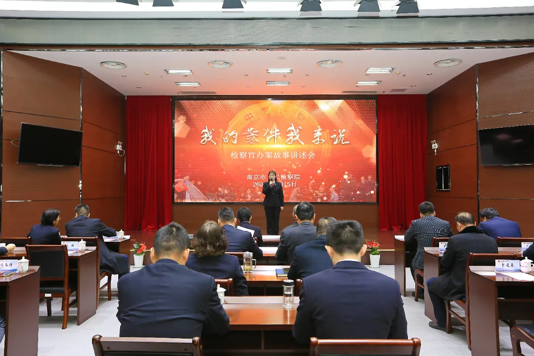 汇报会开始前,与会嘉宾观看全市检察工作汇报片及建邺区检察院“检察护企”工作汇报片。随后观摩“我的案件我来说”检察官办案故事讲述会。来自建邺区人民检察院、玄武区人民检察院和江北新区人民检察院的3名检察官,用生动的语言、真挚的情感讲述了近年来全市检察机关办理的维护企业合法权益、保护弱势群体等方面的典型案例。