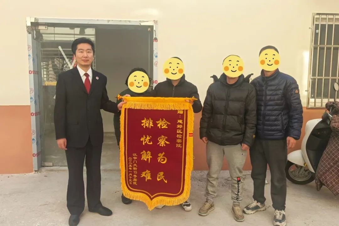 在回访过程中,居民们对检察机关和街道的辛勤工作表示了充分认可和衷心感谢。他们纷纷表示,检察公益诉讼的积极介入和不懈努力让他们得以摆脱危房的困扰,重获安全舒适的居住环境。为表达感激之情,居民们特意制作了一面锦旗亲手送给检察官。检察官也向居民们回赠了对联和福字等新春祝福,恭喜他们入住新家、开启新生活。
